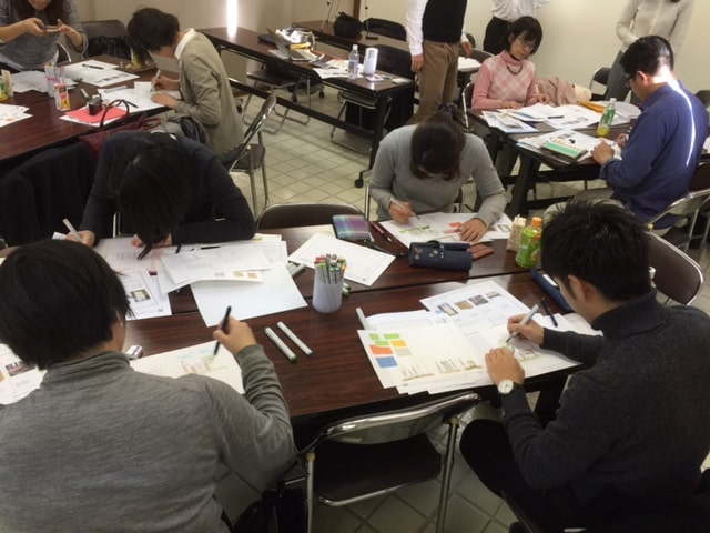 最初はみなさん、「絵は苦手、普段は全然描いていない!」と言っておりましたが、3時間の研修後は「思っていたより描けた!」とご満足いただけたようです。