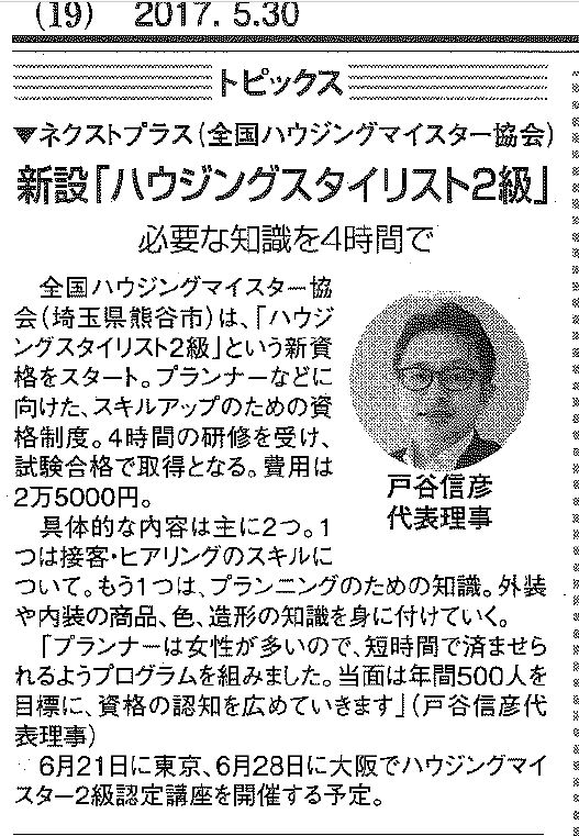 トピックスでハウジングスタイリスト2級をご紹介していただきました。